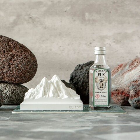 ◆ウォッカのミニチュアボトルと険しい山脈を模したオーナメントのディフューザーセット。