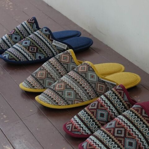 ◆鮮やかなカラーリングとサモア柄が特徴のルームシューズ。