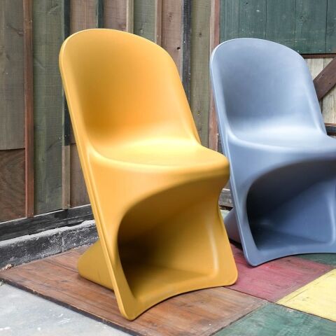 ◆座面から背もたれ、脚部までが一体化したデザインの屋内外兼用の椅子です。