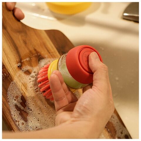 ◆ワンプッシュで洗剤を出しながら、片手で簡単にこすり洗いができます。