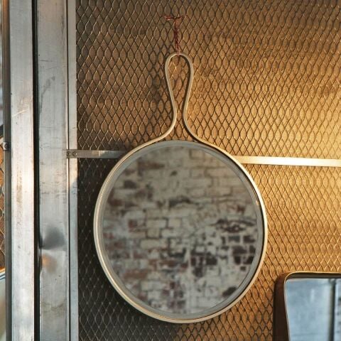 ◆アイアンの重厚感と角の無い柔らかな形状が調和したミラー。