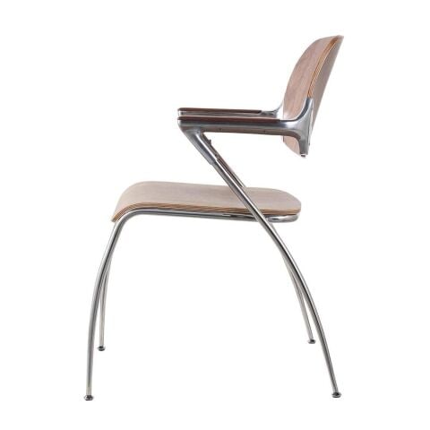 ◆細身のフレームに滑らかなウッドの組み合わせが、全体的に落ち着いた印象を与えつつ、 無骨なアームが個性をもたらします。