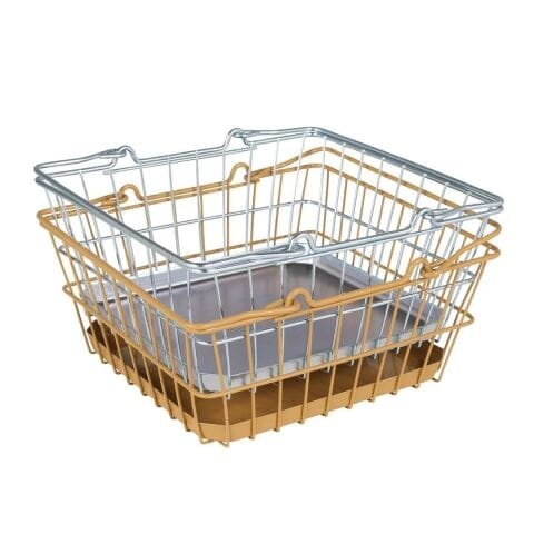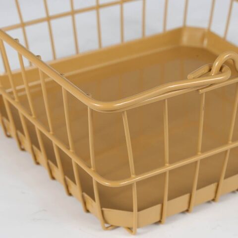 ◆力強いスチール素材に、レトロで柔らかなベージュのカラーリングを施した、ギャップに惹かれるワイヤーバスケット。