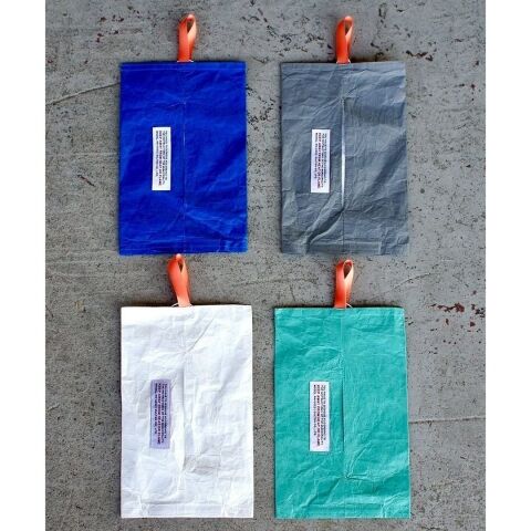 ◆鮮やかなブルーにオレンジのフープがアクセントになったティッシュケース。