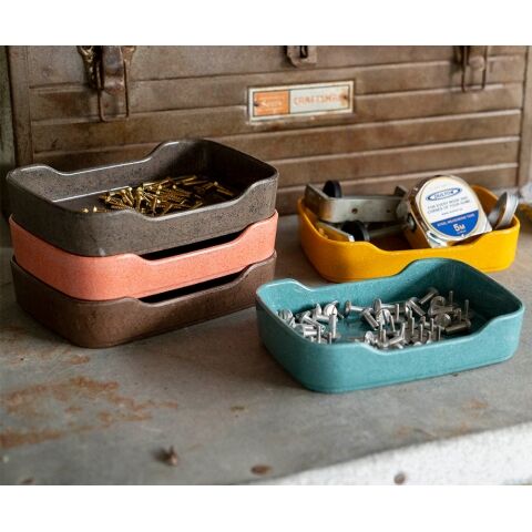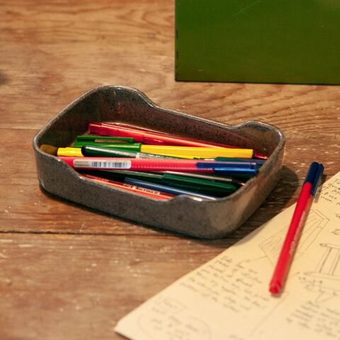 ◆リユースのメラミン材を混ぜ込んでつくられた小物トレイ。