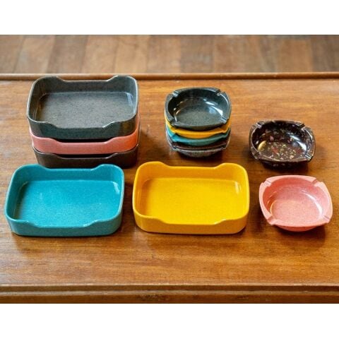 ◆リユースのメラミン材を混ぜ込んでつくられた小物トレイ。