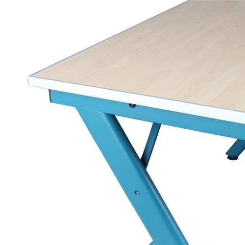 ◆天板に施されたアルミのエッジは、少し高さがあるので、デスク上のペンや工具が落下するのを防ぐ役目も。