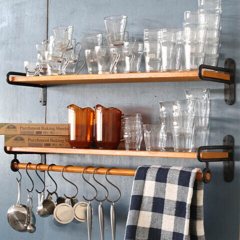 ◆壁に取り付けて、隙間に板を通すだけのこちらの棚受。