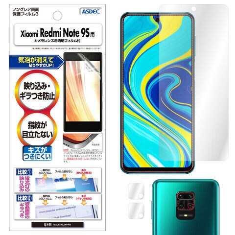 ASDEC(アスデック) Xiaomi Redmi Note 9S用 ノングレア液晶保護フィルム3 NGB-MIRN9S 【返品種別A】