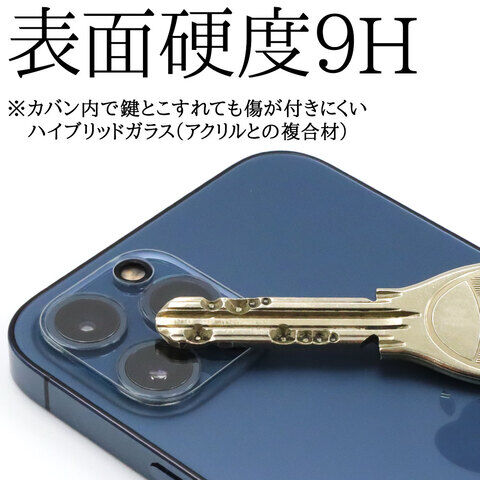 ・ポケットからの出し入れ時や、カバン内で鍵とこすれても傷が付きにくい表面硬度9Hのハイブリッドガラス(アクリルとの複合材)です。