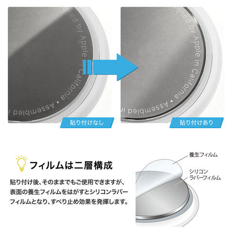◆傷つきやすいAirTagの金属面を守る金属面専用保護フィルムです。