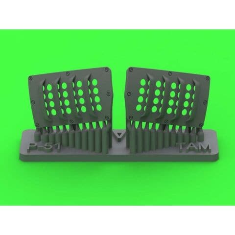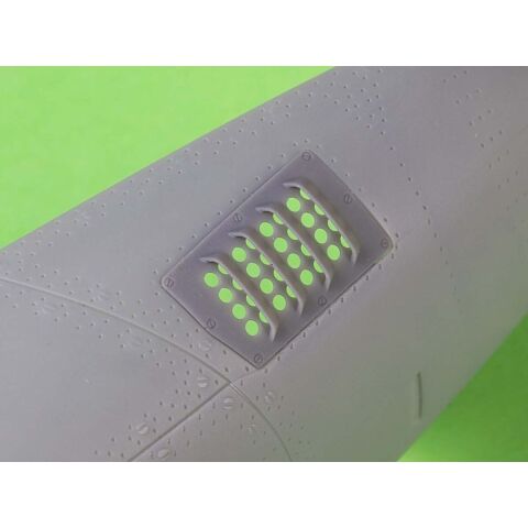 第二次大戦アメリカ軍のP-51ムスタング戦闘機の機首下部左右のキャブレターエアフィルターカバーパネルを再現するディテールパーツです。