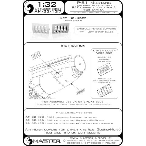 MASTER 1/32 WWII アメリカ P-51ムスタング キャブレターエアフィルターカバー RAFルーバータイプ バージョンA(タミヤ用) です。