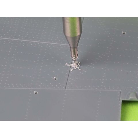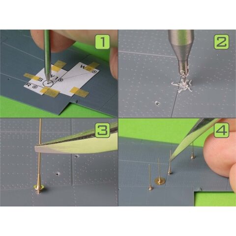 主翼、胴体などに取り付けるアンテナ柱は真鍮挽き物製、アンテナ基部パネルはエッチングパーツをセットします。