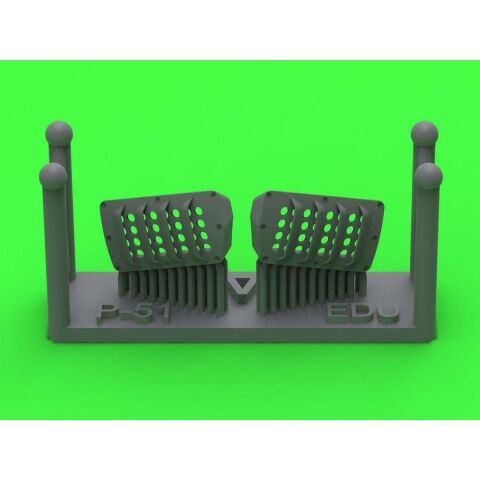 第二次大戦アメリカ軍のP-51ムスタング戦闘機の機首下部左右のキャブレターエアフィルターカバーパネルを再現するディテールパーツです。