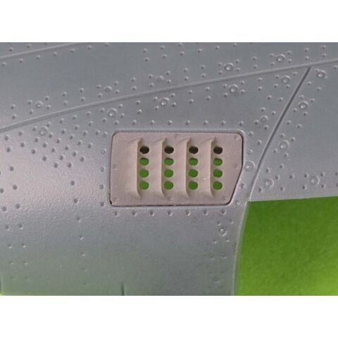 バージョンAでは、イギリス空軍(RAF)機に見られる4枚の短いエラ状のルーバーが追加されたタイプを再現しています。
