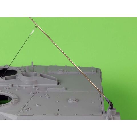 ドイツ連邦軍などで運用されるレオパルド2A7V主力戦車などのVHF 3088VM無線機用アンテナロッドを再現するディテールパーツです。