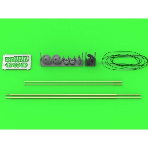 アンテナ柱は真鍮挽き物製、2種類の基部は3Dプリント製パーツ、ケーブル用の糸、ケーブルスリングはエッチングパーツをセットします。
