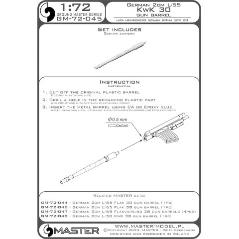 MASTER 1/72 WWII ドイツ 2cm Kw.K.30機関砲砲身(汎用) です。