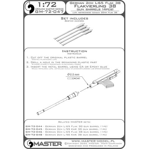 MASTER 1/72 WWII ドイツ 2cm L/65 Flak 38/四連装対空機関砲38砲身(4本入) です。