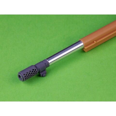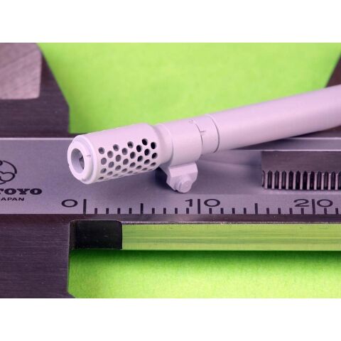 砲身はアルミ挽き物製、多孔式マズルブレーキは3Dプリント製です。