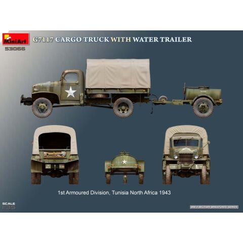 ミニアート 1/35 アメリカ軍 G7117 貨物トラックw/水タンク付きトレーラー です。