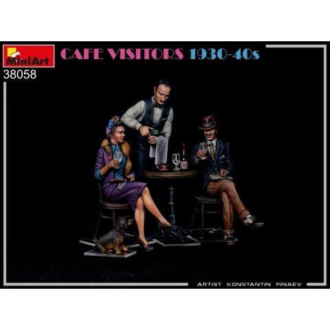 ミニアート 1/35 カフェの客1930-40年代 フィギュア3体&犬1匹 です。