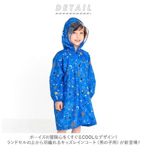◆ボーイズの冒険心をくすぐるCOOLなデザイン! ランドセルの上から羽織れるキッズレインコート(男の子用)!