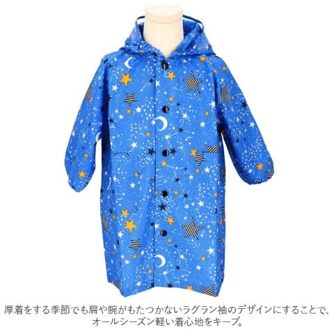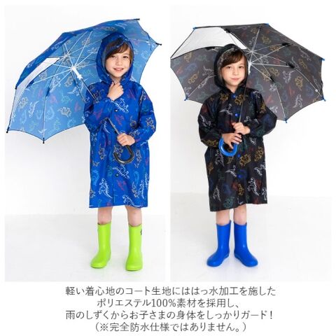 ◆ワイルドな恐竜に宇宙に広がる星座など、男の子の夢を生地いっぱいに散りばめたコートで、雨の日も元気にお出掛け! 持ち運びに便利な収納袋付き。