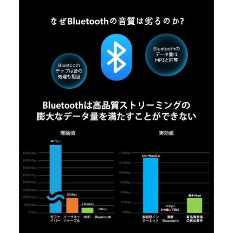 Wi-Fiストリーミング技術は、高ビットレート・高解像度のロスレスオーディオを伝送できます。