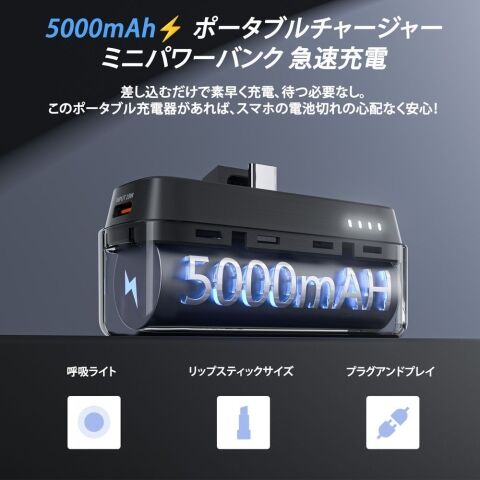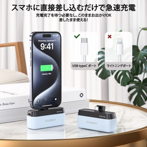 ◆スマホに直接挿して即急速充電、持ち歩きも快適