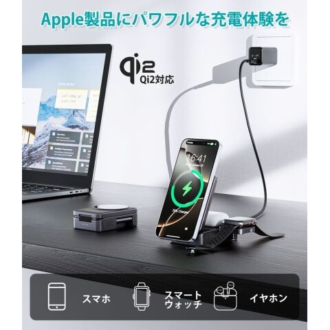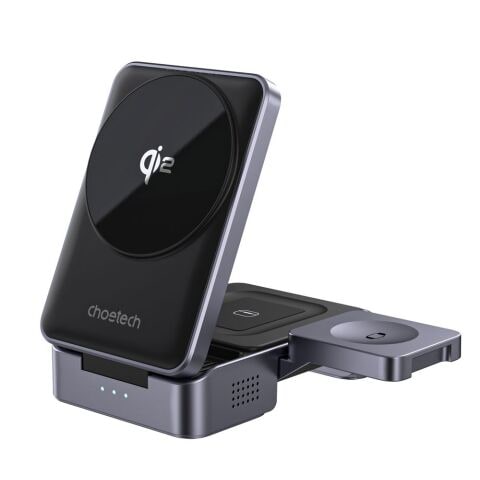 CHOETECH(チョエテック) 折りたためる3in1 ワイヤレス充電スタンド Qi2 MagLeap対応(ブラック) T637-F-CCGY 【返品種別A】