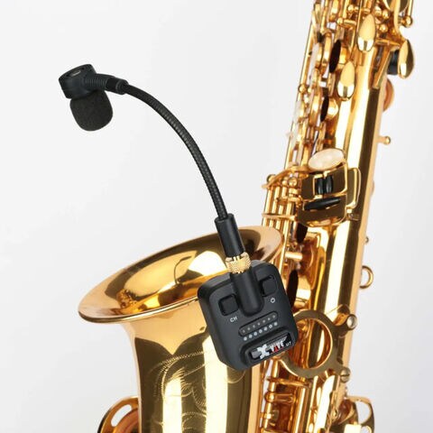 U7には、トランスミッターとグースネック・マイクをサックス、トランペット、トロンボーンのベルに取り付けるための頑丈なクリップが付属しています。