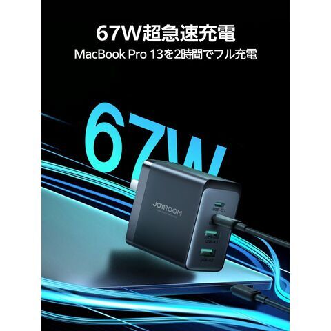 JOYROOM(ジョイルーム) 67W 急速充電器 PD対応 4ポート(Type-C×2/USB-A×2) ACアダプター USB-Cケーブル付属 JR-TCG02 【返品種別A】