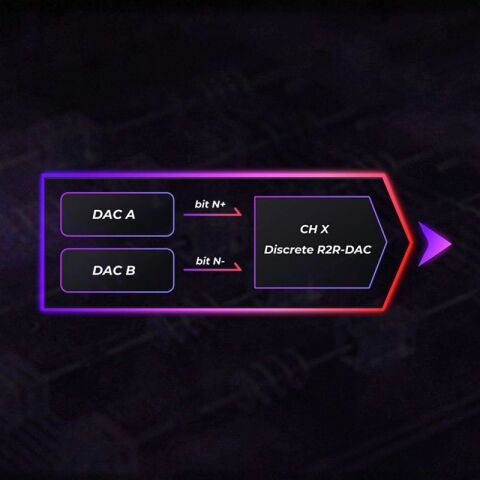 20bit R2R+4bitストリングDACのハイブリッドR2Rアーキテクチャを採用し、フルバランス8ch完全差動回路、FPGA Master3.0テクノロジーとハードウェア抵抗補償ネットワークを組み合わせています。