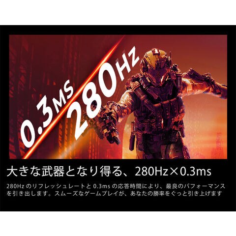 ◆大きな武器となり得る、280Hz×0.3msハイスペックゲーミングモニター