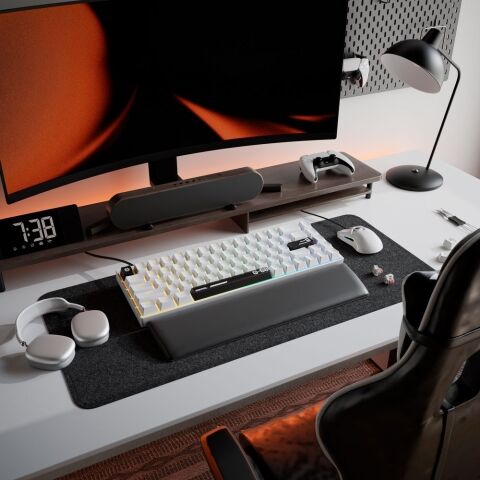 ダブルショット PBT キーキャップは半透明の文字と、油の蓄積や摩耗に強い洗練された質感を特徴としており、キーストロークごとに鮮明で一貫した感触を長年にわたって提供します。