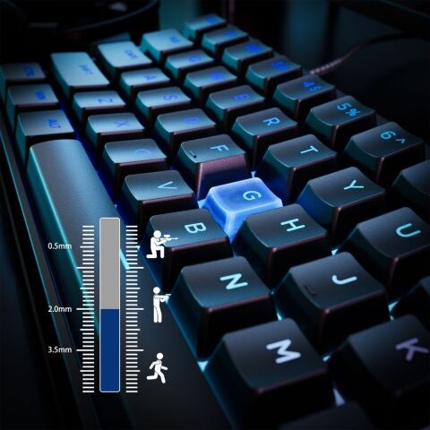FPSゲームでの素早い反応には短めのアクチュエーションポイント、意図的なキーストロークには長めのアクチュエーションポイントを設定するなど、プレイスタイルやワークフローに合わせてキーをカスタマイズできます。