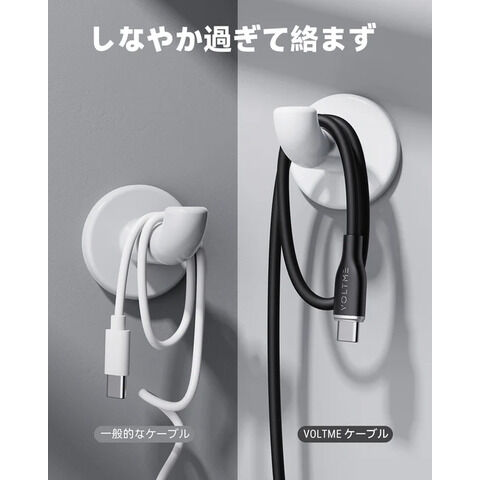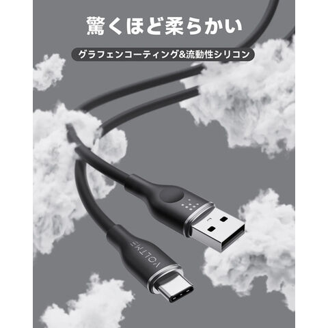VOLTME(ボルトミー) QC3.0対応 データ転送/充電 シリコンケーブル USB-C&USB-A 60W 1.8m(ブラック) C2126 【返品種別A】