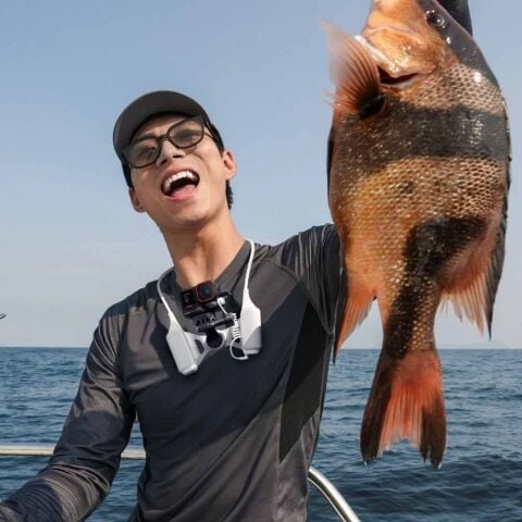 単体で使えるほか、チェストマウント/顎マウントと組み合わせてどこでも柔軟にハンズフリー撮影。