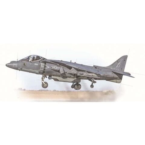 モデルはイギリスが開発、アメリカで改良され海兵隊が運用した垂直離着陸艦載機、AV-8BハリアーIIを1/72スケールで再現したプラスチックモデル組み立てキットです。