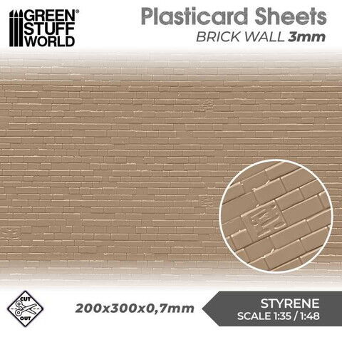 グリーンスタッフワールド プラスチック シート- レンガの壁 3mmテクスチャーシートです。