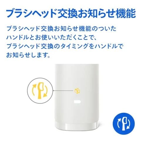 ブラシヘッド交換お知らせ機能のついたハンドルとお使いいただくことで、ブラシヘッド交換のタイミングをハンドルでお知らせします。