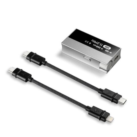 接続した再生機器からの電力を利用するバスパワー方式のため、充電の必要はなく、別途外部サウンドカードやアンプ、DACに接続する必要はありません。また、Lightningポート用のケーブルも付属します。