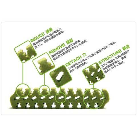 ペット(愛犬)がデンティ・スリーフェアリーを食べるだけで、歯をスムーズに溝へ誘導します。