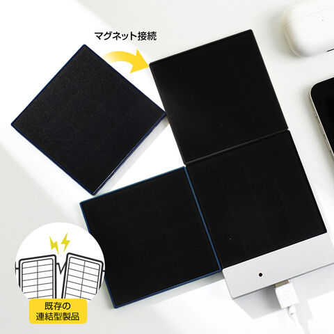 ソーラーパネル側面のマグネット端子搭載でパネルを簡単に連結・拡張可能です。災害時やアウトドアなど、電源が確保しづらい場面で活躍します。