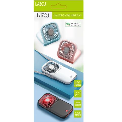 Lazos(ラソス) 携帯扇風機(ブラック) ストラップ付 1台三役扇風機 L-SNF-B 【返品種別A】