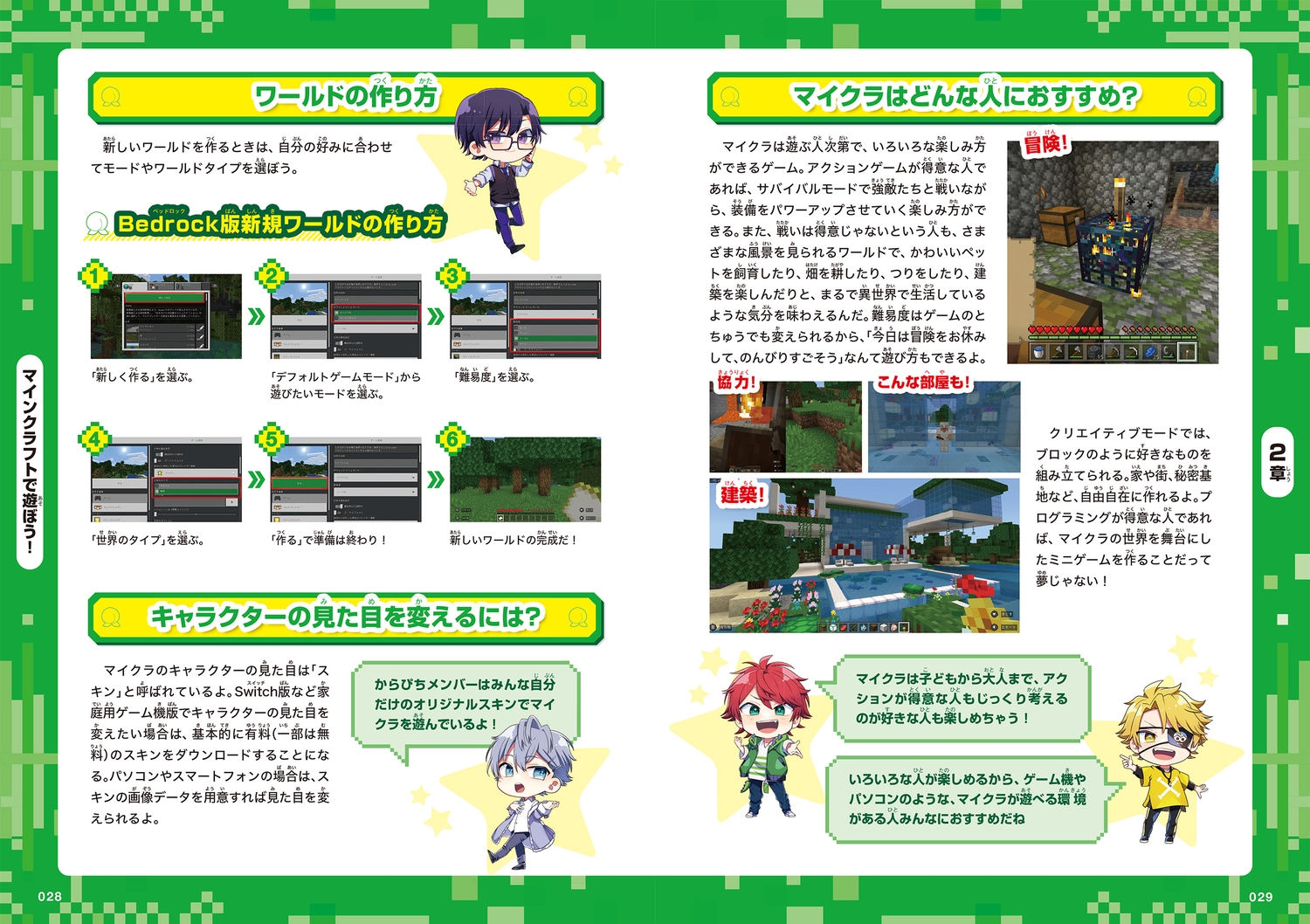 | カラフルピーチ待望の初ブック! マイクラの遊び方や冒険のコツを教えるよ! YouTube155万人! 大人気のカラフルピーチ、通称「からぴち」がナビゲーターになって、マイクラの基本的な遊び方から、コマンドの使い方、最強の装備を作る方法まで楽しく解説した待望の1冊。 からぴちメンバーの紹介、全世界初公開の秘密情報もたっぷりとお届け! 人気動画「魔王と予言の少女」の裏話も大公開しちゃいます。 コマンドの使い方もわかりやすく解説、プログラミングの勉強にもおすすめです! |