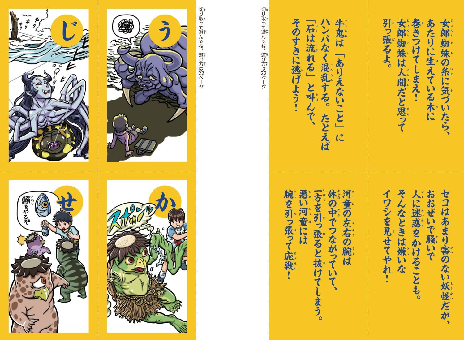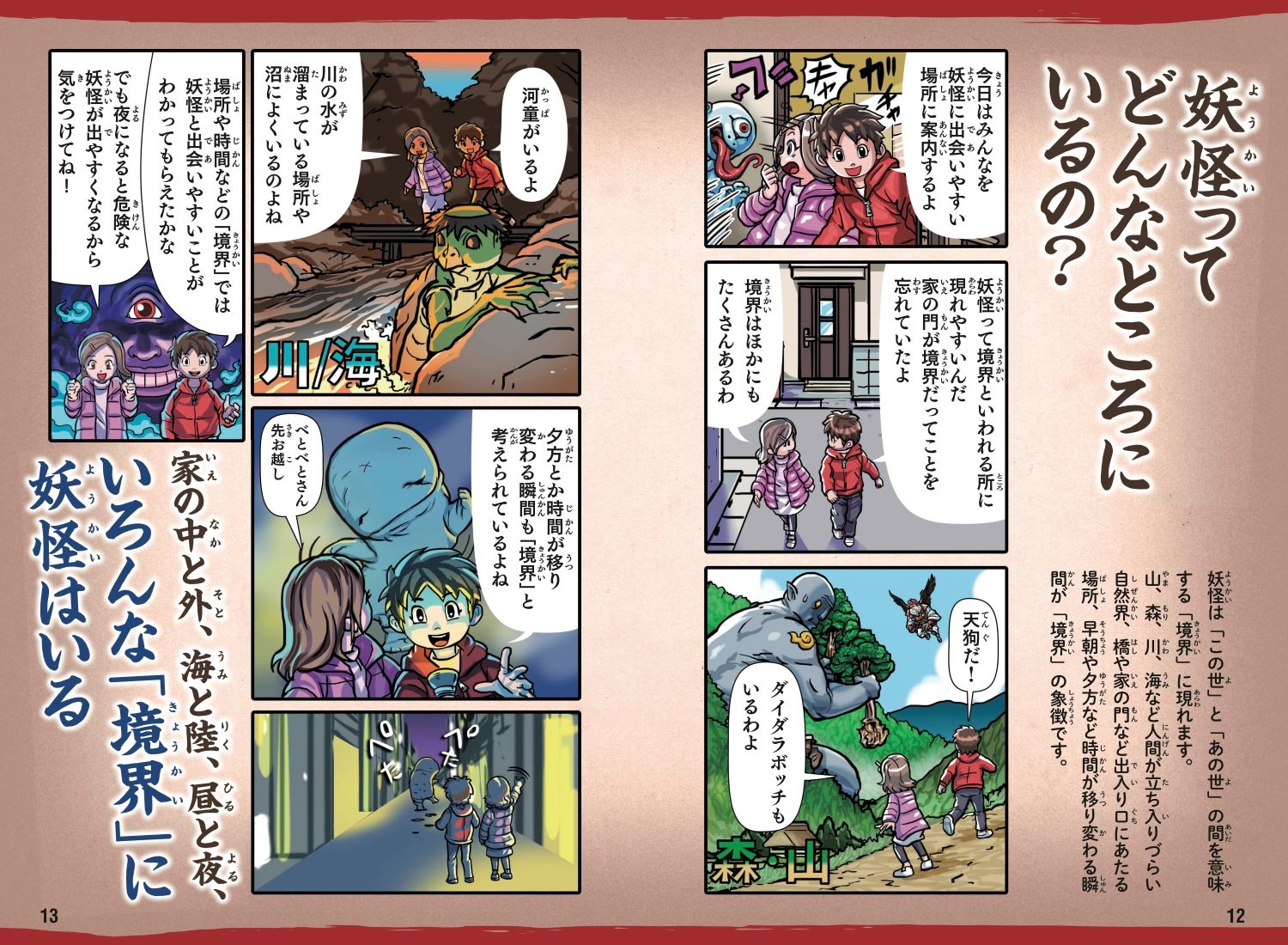 | 文化放送「ロンドンブーツ1号2号 田村淳のNewsCLUB」でも紹介され、大絶賛された妖怪の本! 夏休みの自由研究にもぴったり! 妖怪は怖いだけではありません。危険な妖怪もいるけれど、イタズラ好きだったり、仲よくなれる妖怪もいます。そして、多くの妖怪には弱点があります。それさえ知っていれば、山のように大きな妖怪をやっつけたり、逆に気のいい妖怪とは友だちになれるかも。 ● この本の5つの特徴! 特徴1 妖怪の弱点がとにかくおもしろい! 嫌いなものがあったり、ある呪文に弱かったり、無視されるとシュンとなったり、妖怪の弱点が、とにかくおもしろい! ・ 河童の腕は引っぱると抜ける ・ 天狗はサバがきらい ・ ぬりかべは下を払うと消える ・ かいなではウンコの前の呪文で封じ込める ・ ひとつ目小僧は竹カゴを見るとふるえあがる ・ のっぺらぼうは驚かないと張りあいをなくす ・ べとべとさんは「先へお越し」というと追い抜いてくれる など、全69妖怪の弱点を紹介! 特徴2 47都道府県の出没する妖怪を紹介! 日本は3000以上の妖怪がいる妖怪天国。あなたのそばにもきっといます。まずは、自分の住む地域、そして親戚や、おじいいちゃんおばあちゃんがいる場所の妖怪を知ることで、妖怪に親しみが持てます! 特徴3 子どもがイメージしやすい妖怪イラスト! 子と?もたちが弱点をついて、見事に妖怪をたおしている絵をすべての妖怪に付けています。屈指の妖怪絵師・なんばきびさんの手によって、怖さの中に、どこかとぼけた味わいのある世界観が描かれました。 特徴4 親子の会話が増える妖怪知識が満載! 弱点だけでなく、現れやすい場所、時期、人間との関係性なども詳しく紹介。伝承など豆知識も豊富で、 大人も一緒に楽しめます。豆腐小僧のパパは見越し入道説があるなんて、知ってました? 特徴5 子と?もたちが考えたオリジナル妖怪をイラスト化! 子育てサイト「未来へいこーよ」とコラボし、子どもたちからオリジナル妖怪を募集。その中のいくつかを、なんばきびさんがイラスト化して紹介しています。この本を読むことで、子と?もたちが自分だけの妖怪を考えるきっかけになります! 特徴6 親子で楽しい妖怪かるた付き! 巻末には、豪華な妖怪かるた付き! 読み札・取り札、すべての札に妖怪のたおしかたが書いてあるので、取った札の答え合わせをして、親子で、兄弟で、おじいちゃんおばあちゃんと、みんなで楽しめます! |
