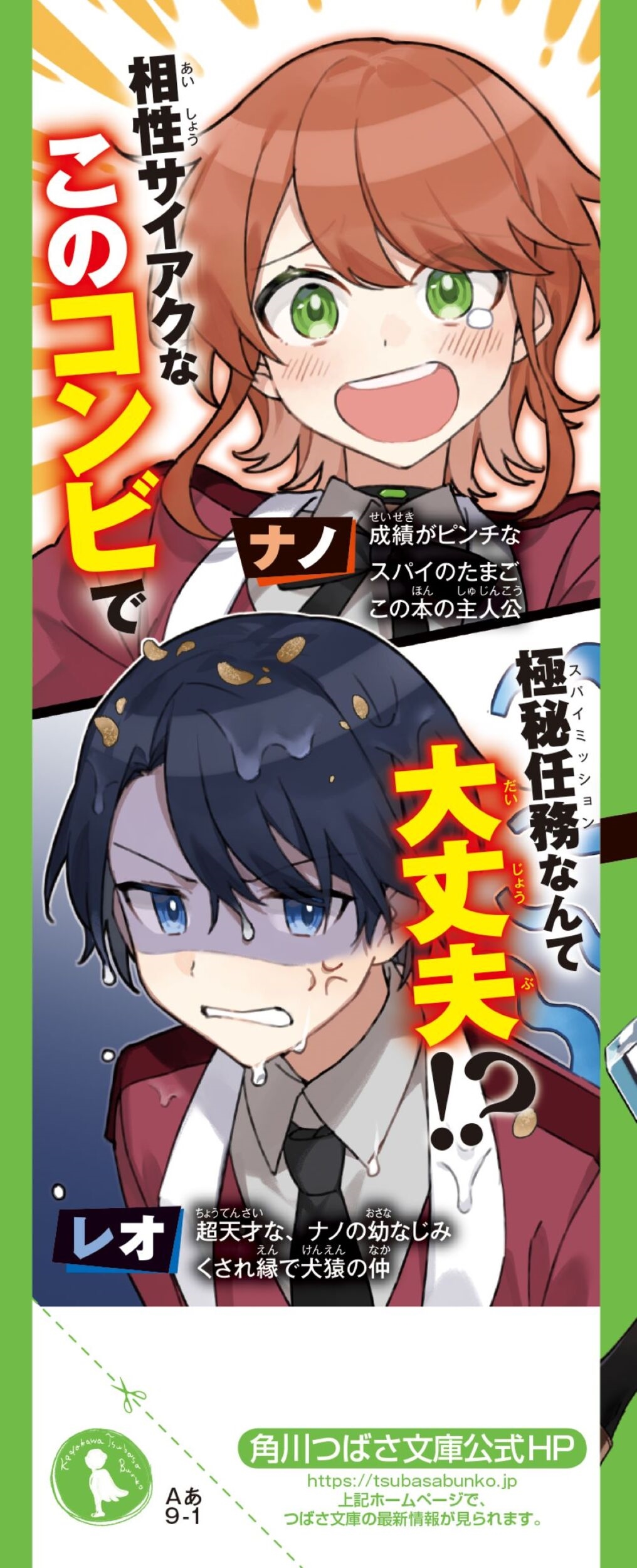 | あたし・ナノが通う小学校は、ふつうじゃない。そこは〈スパイ学園〉。 ヒミツの場所にあって、世界中からえらばれた生徒が集まる、トクベツな学校なんだ。 ある日、そんな学園の秘宝がうばわれた! おまけにみんなが薬でねむらされ、うごけるのは二人だけ。天才(だけど性格はサイテー)な幼なじみのレオといきなり、宝をとり返すため、「正体がバレたら終わり」な極秘任務にいどむことになって……。 相性サイアクな二人で、キケン度100%スパイミッション! 【第9回つばさ文庫小説賞《金賞》受賞作だよ!】 |
